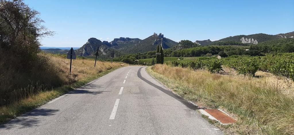 Et voila, à 08 heures 15 précises, (hum), les cinq courageux démarrent certes timidement les premier kilomètres. Nous empruntons le CD 21 et direction Coromb. Ensuite toujours tranquillement, Modène, Saint Pierre de Vassols et Bedoin.
